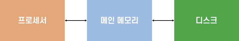 cpu는 점점 발전함에 따라 속도가 빨라지는데 disk가 그 속도 차이를 메꾸기 어려워지게 되면서 많은 병목이 발생했었다. 속도를 따라가지 못하니 일 처리 능력이 떨어지게 되면서 이를 해소하기 위해 중간에 메인 메모리를 두게 되었고, 이 덕분에 성능을 조금 더 빠르게 할 수 있었다.
